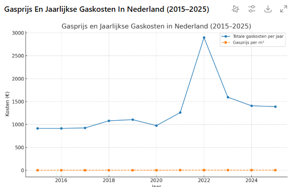 Uitgebreide kostenvergelijking gasprijzen per jaar (2015–2025)